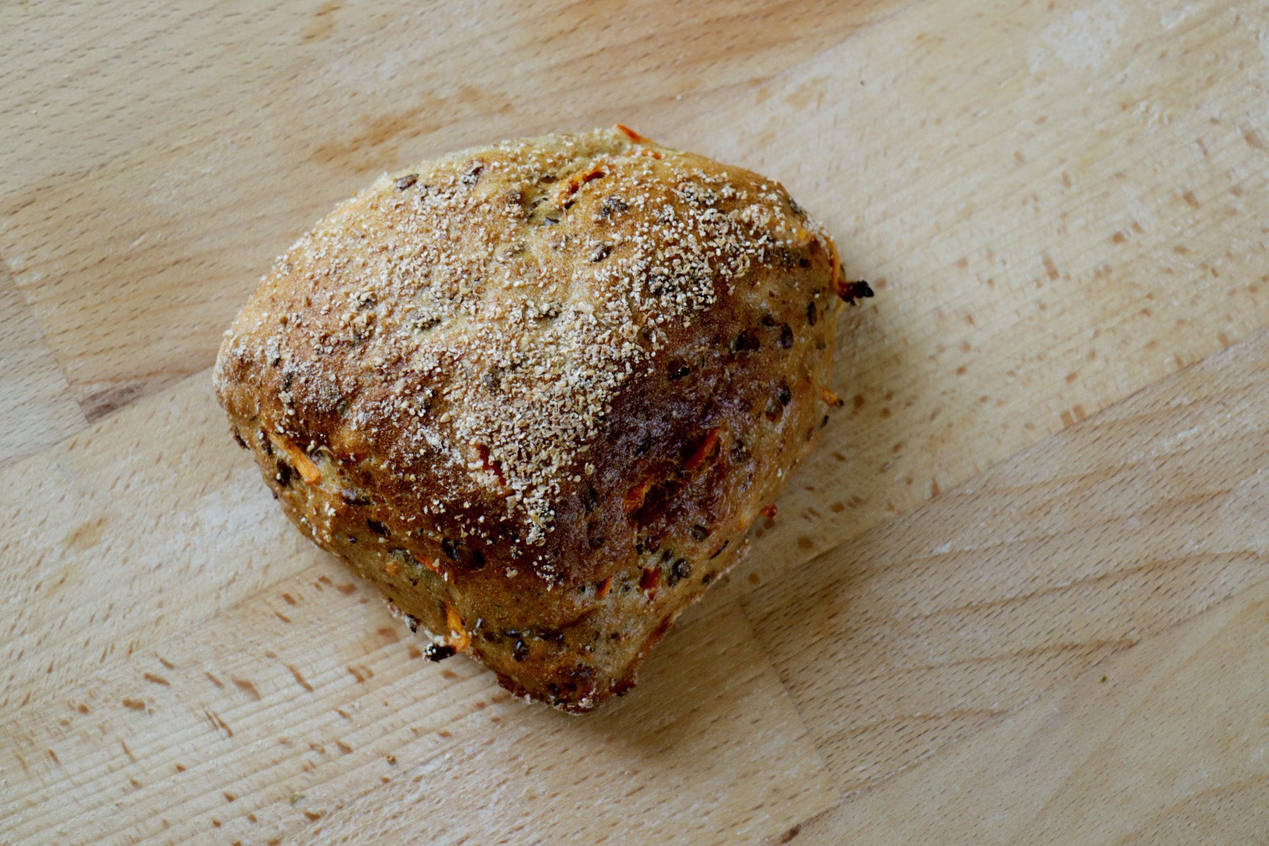 Zutaten: Weizenmehl**, Wasser, Roggenvollkornnatursauerteig**, 16% Möhren**, 4% Leinsaat*, Weizenvollkornmehl**, Zuckerrübensirup**, Hefe*, Steinsalz