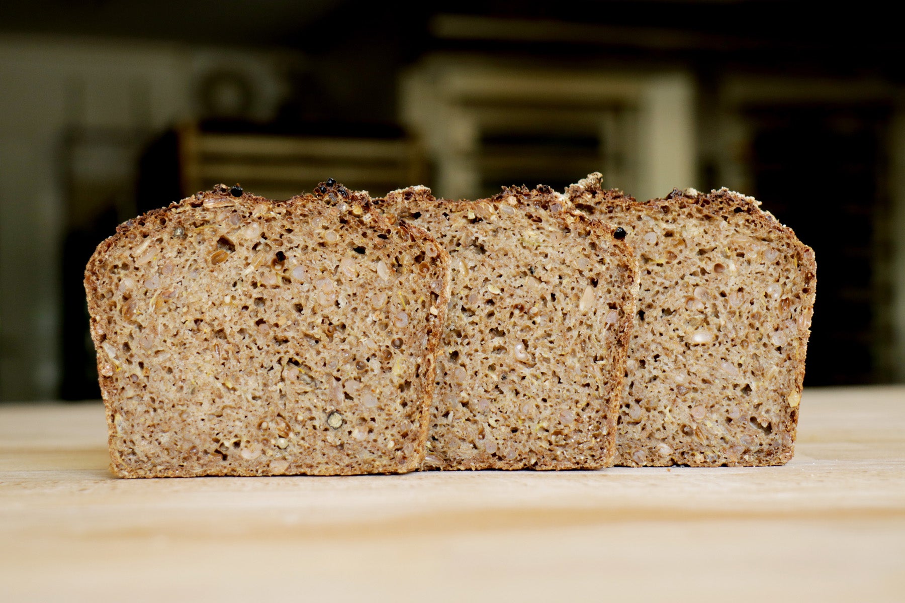 Dieses Brot enthält Roggen- und Weizensprossen sowie eine dezente, leicht scharfe Pfeffernote. Es zeichnet sich durch eine ansprechende Körnigkeit und Saftigkeit aus. Die Schärfe ist subtil und bleibt angenehm im Hintergrund. Ideal passt dazu ein Kräuterquark.